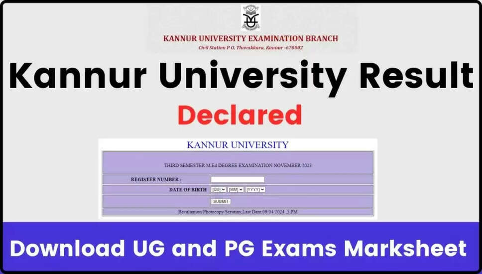 कन्नूर यूनिवर्सिटी ने 2024 के यूजी और पीजी परिणाम जारी किए; यहां से डाउनलोड करें मार्कशीट