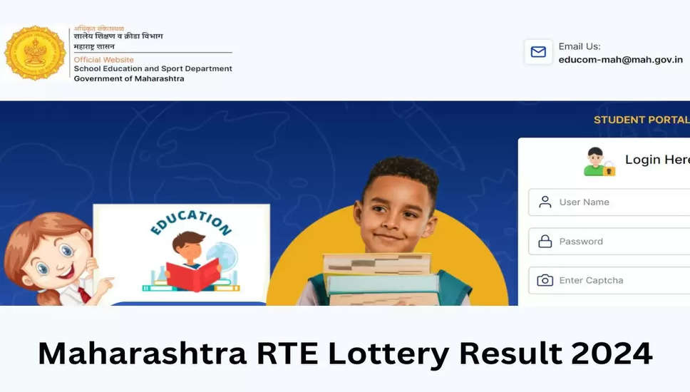महाराष्ट्र सरकार का स्कूल शिक्षा और खेल विभाग जल्द ही महाराष्ट्र आरटीई लॉटरी परिणाम 2024-25 जारी करेगा। जिन अभिभावकों ने अपने बच्चों को महाराष्ट्र आरटीई 2024 के लिए पंजीकृत किया है, वे लिंक सक्रिय होने के बाद आधिकारिक वेबसाइट से परिणाम डाउनलोड कर सकते हैं।