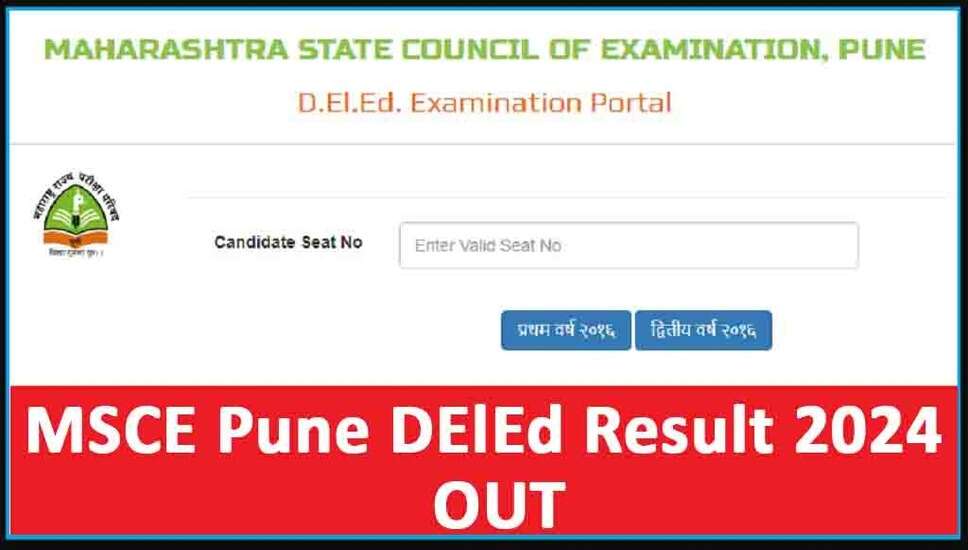 महाराष्ट्र राज्य परीक्षा परिषद, पुणे (MSCE पुणे) ने महाराष्ट्र डिप्लोमा इन एलीमेंट्री एजुकेशन (DElEd) परीक्षा के नतीजे जारी कर दिए हैं। उम्मीदवार आधिकारिक वेबसाइट deledexam.in और mscepune.in पर जाकर प्रथम और द्वितीय वर्ष के अपने अंक डाउनलोड कर सकते हैं ।