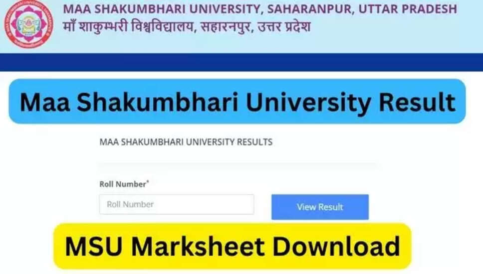 माँ शाकुंभरी विश्वविद्यालय (MSU) ने एमएससी, एमए, एलएलबी, बीकॉम एलएलबी, बीए एलएलबी, एमपीएड, एमएफए, बीएससी और अन्य सहित विभिन्न पाठ्यक्रमों के लिए सेमेस्टर परिणाम जारी कर दिए हैं। जो छात्र इन परीक्षाओं के लिए उपस्थित हुए थे, वे अब आधिकारिक वेबसाइट msuniversity.ac.in से अपने परिणाम ऑनलाइन देख और डाउनलोड कर सकते हैं।