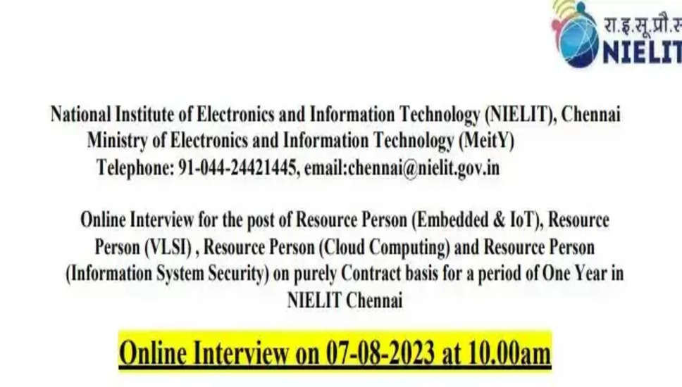 NIELIT संसाधन व्यक्ति भर्ती 2022: साक्षात्कार परिणाम घोषित