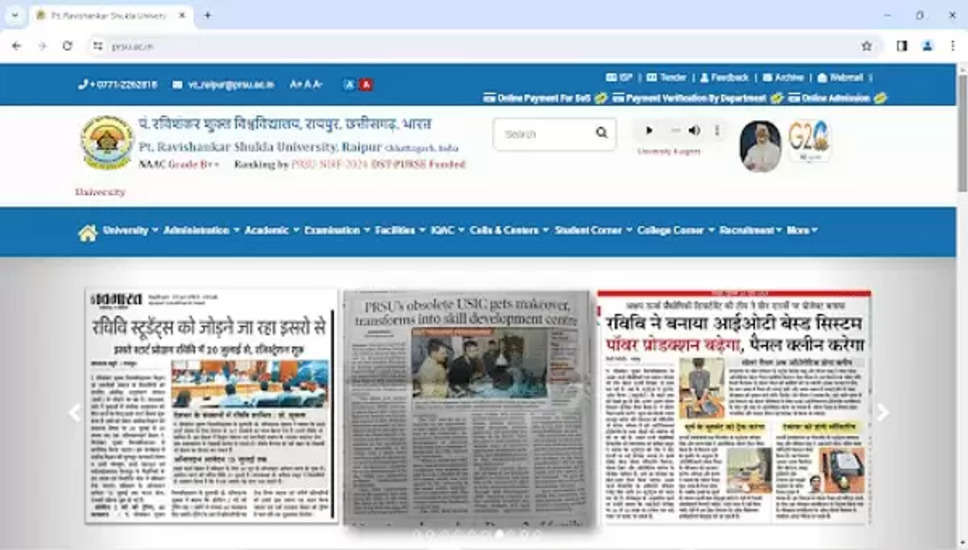 पं. रविशंकर शुक्ल विश्वविद्यालय (PRSU) ने बीए, बीकॉम, बीएससी, एमए, एमकॉम, एमएससी और अन्य जैसे विभिन्न पाठ्यक्रमों के सेमेस्टर परिणाम घोषित कर दिए हैं। मार्च-अप्रैल 2024 में आयोजित वार्षिक परीक्षाओं में भाग लेने वाले छात्र आधिकारिक वेबसाइट prsu.ac.in से अपने परिणाम देख और डाउनलोड कर सकते हैं । PRSU परिणाम 2024 तक पहुँचने के लिए, छात्रों को अपने रोल नंबर के साथ लॉग इन करना होगा।