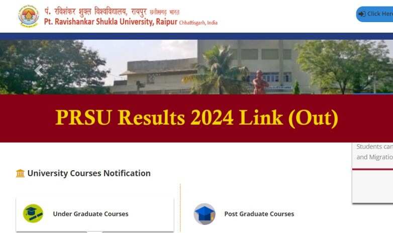 पं. रविशंकर शुक्ल विश्वविद्यालय (PRSU) ने हाल ही में BA, BCom, BSc, MA, MCom, MSc सहित विभिन्न पाठ्यक्रमों के सेमेस्टर परिणाम घोषित किए हैं। मार्च-अप्रैल 2024 में आयोजित वार्षिक परीक्षाओं के परिणाम आधिकारिक वेबसाइट prsu.ac.in पर ऑनलाइन उपलब्ध हैं । जिन छात्रों ने इन परीक्षाओं में भाग लिया था, वे नीचे दिए गए चरणों का पालन करके अपने परिणाम देख और डाउनलोड कर सकते हैं।