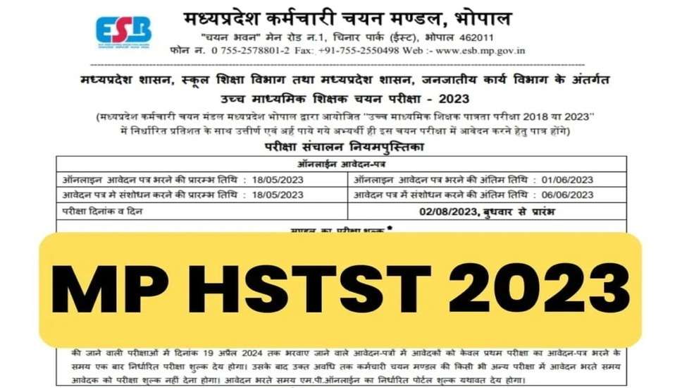 क्या आप मध्य प्रदेश कर्मचारी चयन बोर्ड (MPESB) हाई स्कूल शिक्षक चयन परीक्षा (HSTST) भर्ती 2023 के बारे में नवीनतम अपडेट जानने के लिए उत्सुक हैं? संशोधित परिणाम घोषित कर दिया गया है, और रिक्ति के लिए नामांकित उम्मीदवार इसे अभी डाउनलोड कर सकते हैं। भर्ती प्रक्रिया, पात्रता मानदंड, पद विवरण, चयन प्रक्रिया और महत्वपूर्ण तिथियों के बारे में अधिक जानने के लिए आगे पढ़ें।