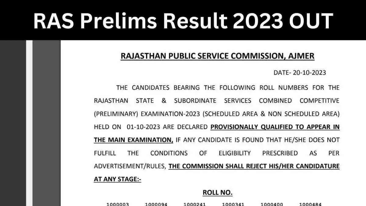 RPSC RAS Prelims Result 2023 जारी, यहाँ चेक करें अपना रिजल्ट