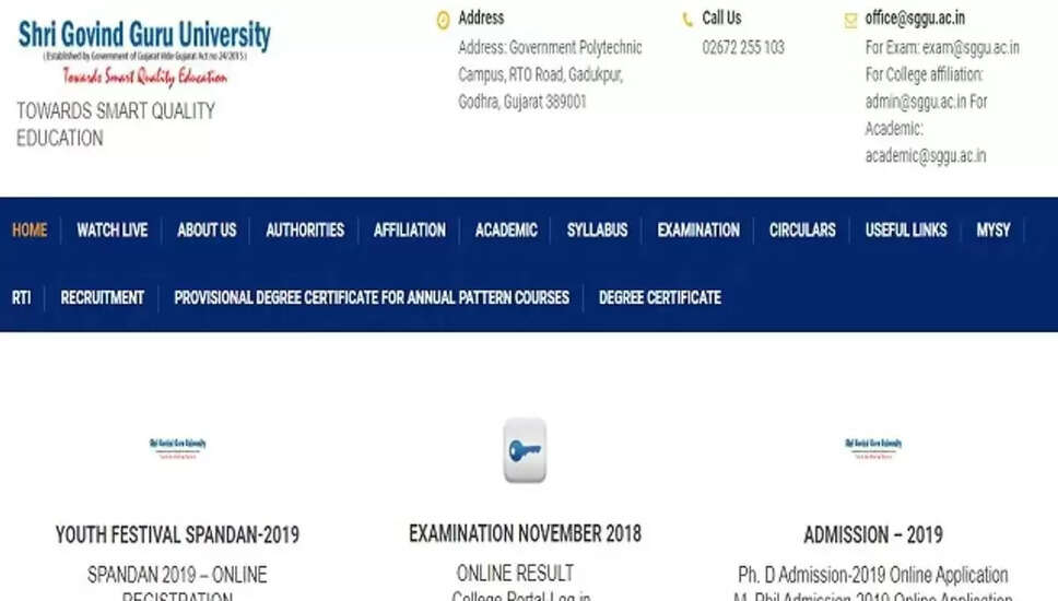 आधिकारिक वेबसाइट पर जाएँ : श्री गोविंद गुरु विश्वविद्यालय की आधिकारिक वेबसाइट sggu.ac.in पर जाएँ ।