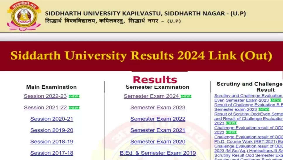 सिद्धार्थ विश्वविद्यालय परीक्षा परिणाम 2024 जारी: UG और PG मार्कशीट ऑनलाइन देखें