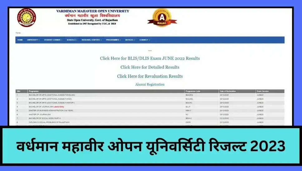 वर्धमान महावीर ओपन यूनिवर्सिटी (वीएमओयू) ने आखिरकार विभिन्न स्नातक (यूजी) और स्नातकोत्तर (पीजी) पाठ्यक्रमों के परिणाम घोषित कर दिए हैं! जो छात्र बीएससी (अर्थशास्त्र), पीजी डिप्लोमा इन कंप्यूटर अकाउंटिंग एंड ऑडिट, बीएलआईएस और डीएलआईएस परीक्षाओं के लिए उपस्थित हुए थे, वे अब अपने परिणाम ऑनलाइन देख सकते हैं।