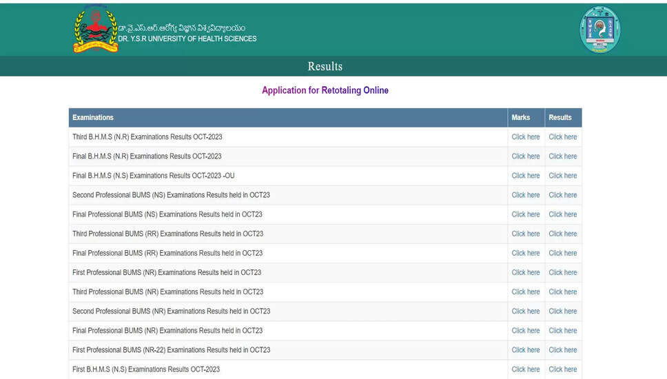 वाईएसआर यूनिवर्सिटी ऑफ हेल्थ साइंसेज परिणाम 2024 के लिए सीधा लिंक: