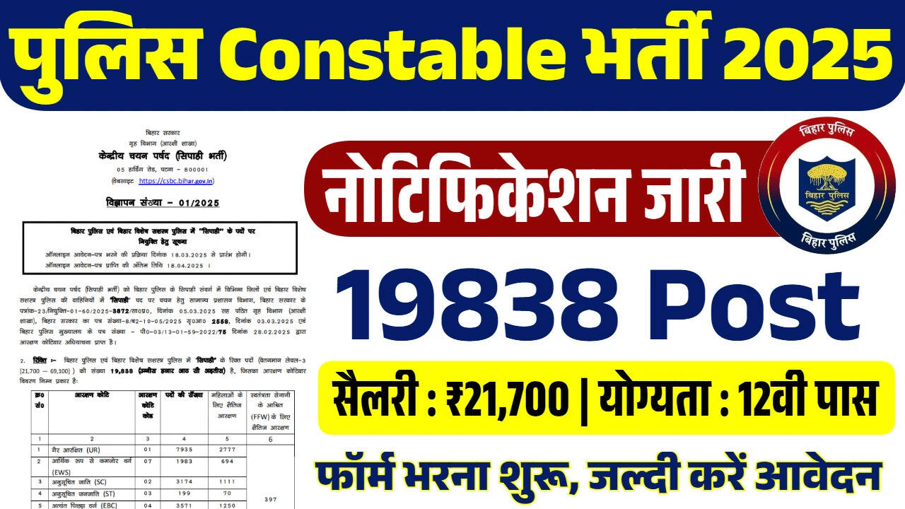 बिहार पुलिस कांस्टेबल भर्ती 2025: 19000 पदों के लिए आवेदन प्रक्रिया शुरू