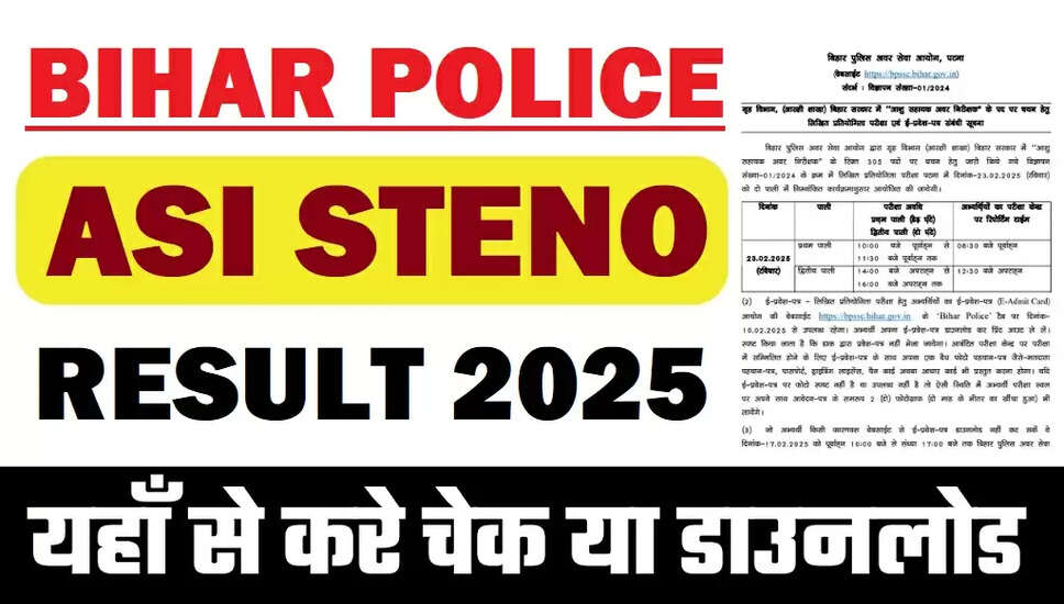 बिहार पुलिस अधीनस्थ सेवा आयोग (BPSSC)बिहार पुलिस BPSSC ASI स्टेनो पात्रता परीक्षा परिणाम 2025बिहार पुलिस स्टेनो ASI विज्ञापन संख्या: 01/2024 |