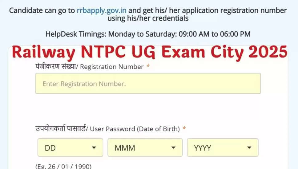 रेलवे NTPC UG परीक्षा शहर 2025 का विवरण