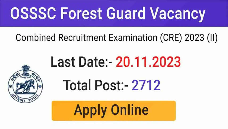 ओडिशा अधीनस्थ कर्मचारी चयन आयोग (ओएसएसएससी) ने वन रक्षक, पशुधन निरीक्षक और वनपाल सहित विभिन्न भूमिकाओं के लिए आवेदन खोले हैं। यह भर्ती अभियान कुल 2,712 रिक्तियों की पेशकश करता है। इच्छुक और योग्य उम्मीदवार आधिकारिक वेबसाइट osssc.gov.in पर जाकर आवेदन कर सकते हैं।
