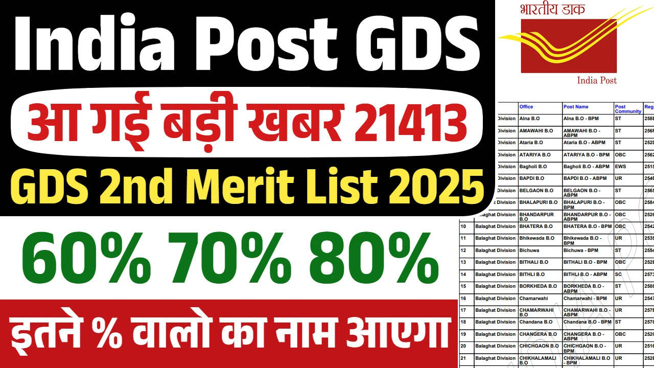 भारतीय डाक विभाग ने ग्रामीण डाक सेवक (GDS), ब्रांच पोस्टमास्टर (BPM) और असिस्टेंट ब्रांच पोस्टमास्टर (ABPM) के लिए कुल 21,413 पदों पर भर्ती की प्रक्रिया शुरू की थी। लाखों उम्मीदवारों ने इसके लिए आवेदन किया है और अब सभी को जीडीएस मेरिट लिस्ट का बेसब्री से इंतजार है। पहले मेरिट लिस्ट की घोषणा हो चुकी है।