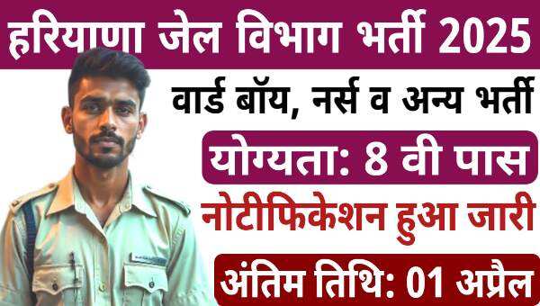 हरियाणा जेल विभाग भर्ती 2025: वार्ड बॉय और अन्य पदों के लिए आवेदन करें, बिना परीक्षा 8वीं पास योग्य