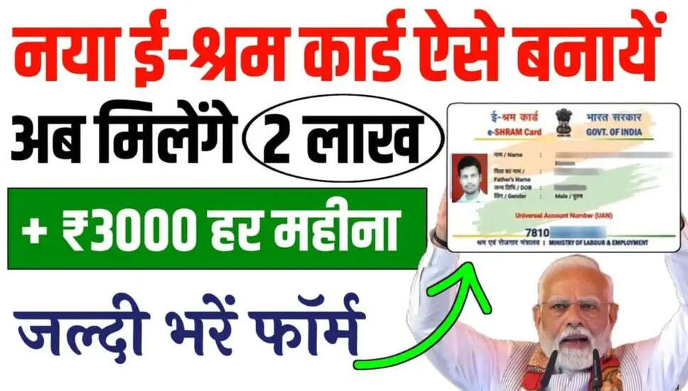 अब आप अपने घर से ही ई-श्रम कार्ड के लिए ऑनलाइन आवेदन कर सकते हैं। इस कार्ड के माध्यम से आपको कई लाभ मिलते हैं, जैसे कि 60 वर्ष की आयु के बाद 3000 रुपये प्रति माह पेंशन और 2 लाख रुपये का दुर्घटना बीमा। इसके अलावा, ई-श्रम कार्ड के जरिए आप विभिन्न सरकारी योजनाओं का लाभ भी उठा सकते हैं। वर्तमान में, केंद्र सरकार के ई-श्रम पोर्टल से 30 करोड़ से अधिक लोग जुड़ चुके हैं।
