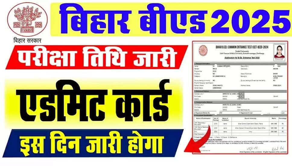 महत्वपूर्ण जानकारी: लालित नारायण मिथिला विश्वविद्यालय (LNMU) द्वारा B. Ed. सामान्य प्रवेश परीक्षा (CET-BED)-2025 के लिए प्रवेश पत्र जारी किया जाएगा। यह परीक्षा नियमित, दूरस्थ और शिक्षा शास्त्री 02 वर्ष पाठ्यक्रम के लिए होगी।