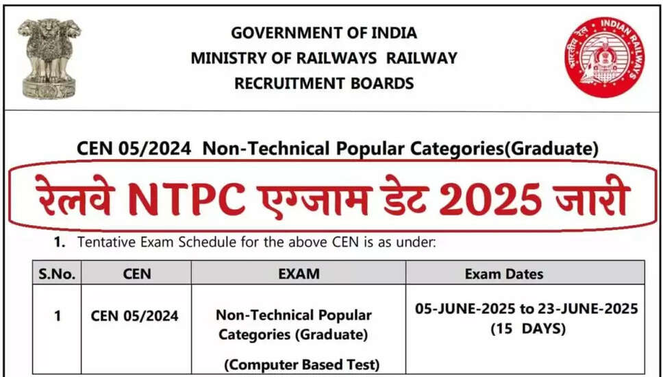 रेलवे एनटीपीसी ग्रेजुएट लेवल परीक्षा तिथि 2025 की घोषणा