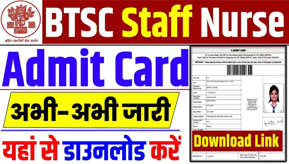 Bihar Technical Service Commission (BTSC)Bihar BTSC स्टाफ नर्स एडमिट कार्ड 2025BTSC विज्ञापन संख्या: 23/2025 |