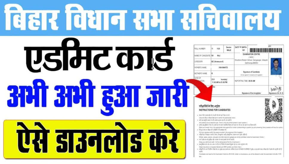 बिहार विधान सभा ने सहायक अनुभाग अधिकारी, जूनियर क्लर्क, और अन्य पदों के लिए एडमिट कार्ड जारी कर दिए हैं। इस भर्ती में कुल 142 पद हैं और आवेदन की प्रक्रिया 29 नवंबर से 13 दिसंबर 2024 तक चली। लिखित परीक्षा 25 से 30 जून 2025 के बीच आयोजित की जाएगी। इस लेख में महत्वपूर्ण तिथियाँ, आवेदन शुल्क, और एडमिट कार्ड डाउनलोड करने की प्रक्रिया के बारे में जानकारी दी गई है। अधिक जानकारी के लिए लेख को पूरा पढ़ें।
