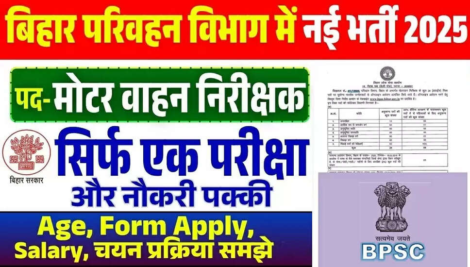 बिहार लोक सेवा आयोग (BPSC)BPSC मोटर वाहन निरीक्षक भर्ती 2025BPSC MVI विज्ञापन संख्या: 41/2025 |