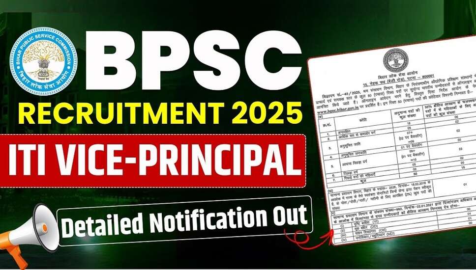 The Bihar Public Service Commission (BPSC) has announced the recruitment for 50 Vice Principal positions in ITIs. The application process is open from June 10 to July 3, 2025. Candidates are encouraged to check the eligibility criteria, application fees, and important dates. This recruitment offers a significant opportunity for those with an engineering background. For detailed information on how to apply and the selection process, read the full article.