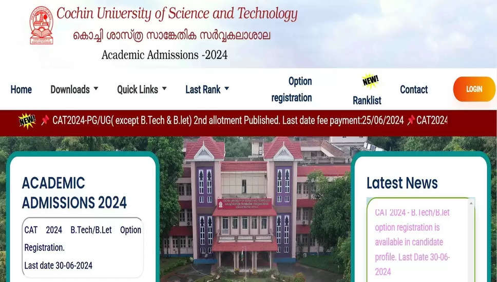 CUSAT CAT 2024 काउंसलिंग के लिए BTech विकल्प पंजीकरण की अंतिम तिथि बढ़ी: नई अंतिम तिथि 30 जून
