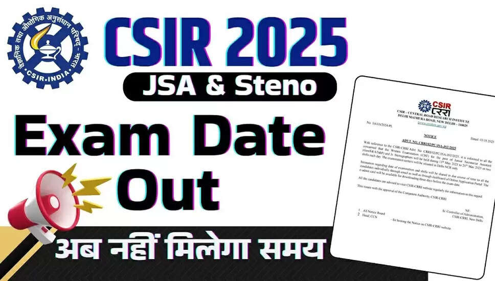 CSIR केंद्रीय सड़क अनुसंधान संस्थान (CRRI)CSIR CRRI JSA, स्टेनोग्राफर परीक्षा तिथि 2025CSIR विज्ञापन संख्या: CRRI/02/PC/JSA-JST/2025 |