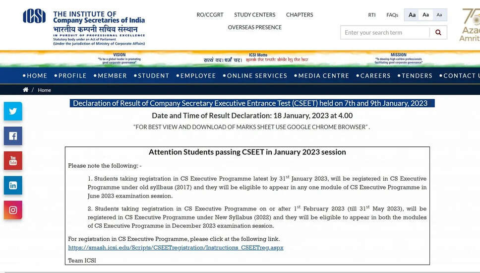 - ICSI की आधिकारिक वेबसाइट पर जाएं।