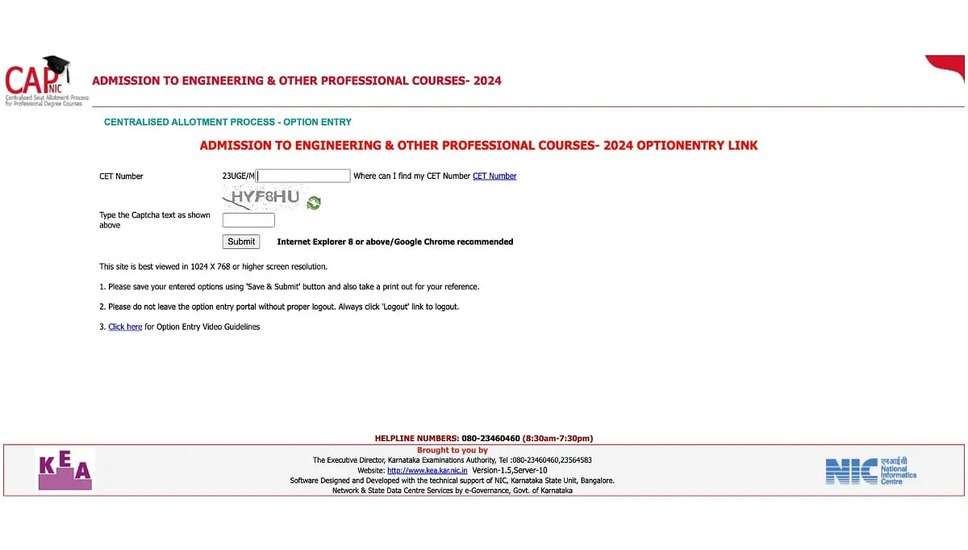 - KCET काउंसलिंग की आधिकारिक वेबसाइट kea.kar.nic.in पर जाएं ।