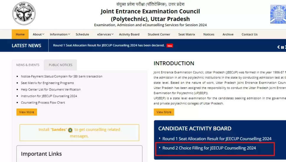 JEECUP 2024 राउंड 2 की सीट चयन प्रक्रिया की आखिरी तारीख आज, सीट आवंटन परिणाम कल घोषित