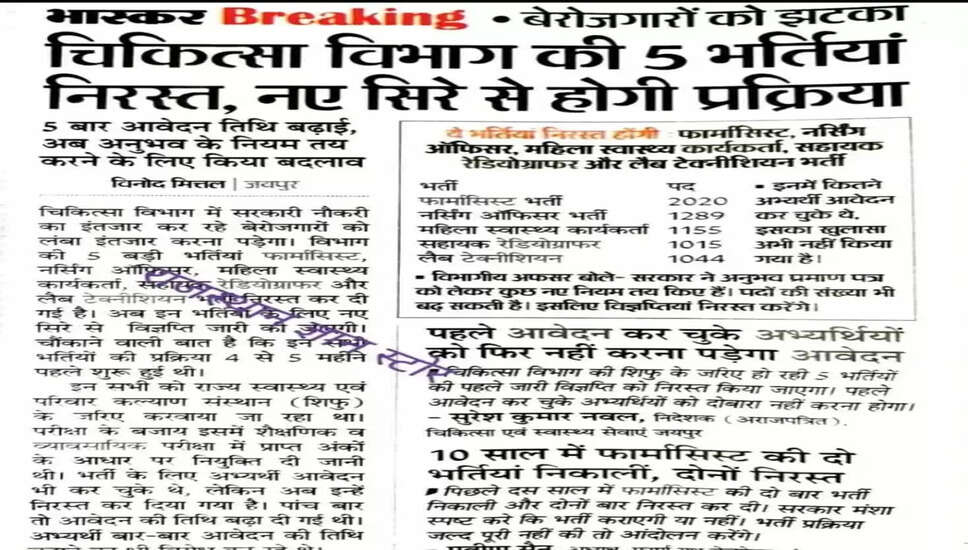 Rajasthan 5 Recruitment Cancelled 2023 राजस्थान चिकित्सा विभाग में 5 भर्तियां कैंसिल, नए सिरे से होंगी शुरू