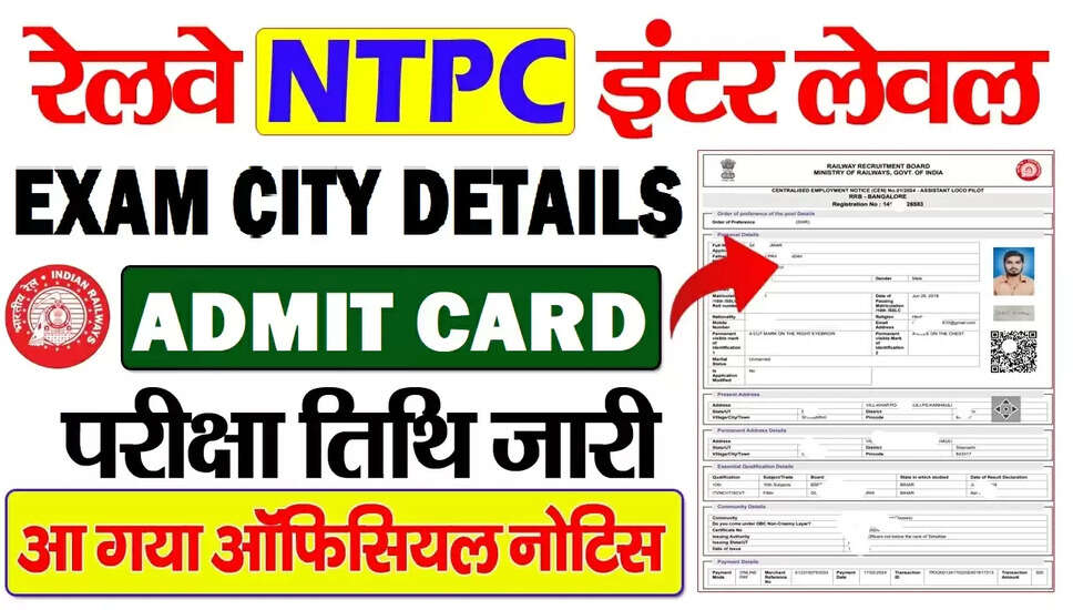 रेलवे भर्ती बोर्ड (RRB)रेलवे RRB NTPC 10+2 इंटर लेवल परीक्षा शहर विवरण 2025RRB NTPC अंडर ग्रेजुएट लेवल CEN 06/2024 |