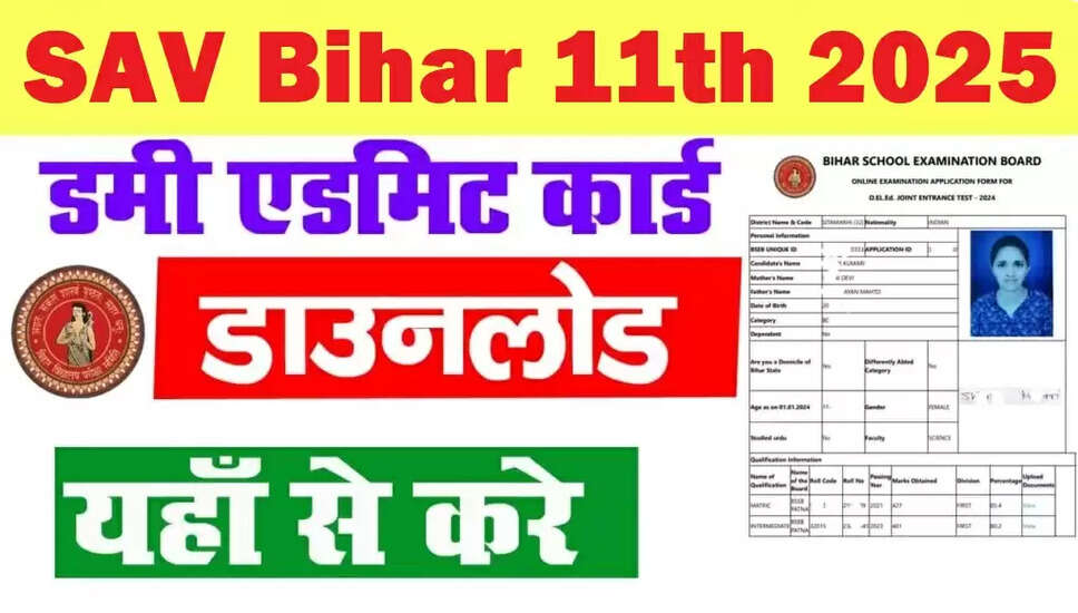 कैसे डाउनलोड करें SAV बिहार कक्षा 11 डमी एडमिट कार्ड 2025