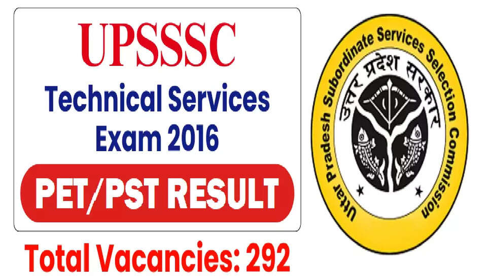 UPSSSC तकनीकी सेवा परीक्षा 2016 का PET/PST परिणाम 2025 जारी