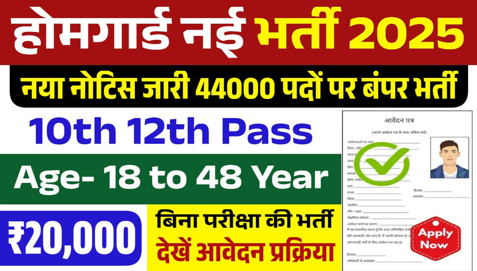 प्रदेश में होमगार्ड भर्ती का आयोजन जल्द ही किया जाएगा। इस भर्ती के लिए 44000 पदों पर आवेदन आमंत्रित किए जाएंगे।