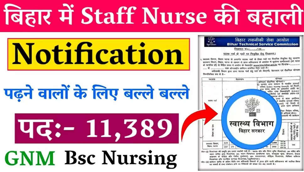 बिहार BTSC स्टाफ नर्स 2025: रिक्तियों का विवरणकुल पद: 11389