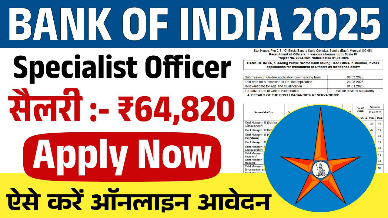 बैंकिंग क्षेत्र में करियर बनाने के इच्छुक उम्मीदवारों के लिए एक महत्वपूर्ण अवसर आया है। बैंक ऑफ इंडिया ने स्पेशलिस्ट ऑफिसर के पदों के लिए भर्ती का नोटिफिकेशन जारी किया है।