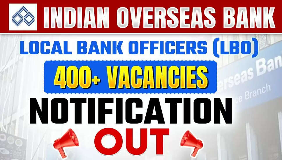 भारतीय ओवरसीज बैंक LBO 2025: रिक्तियों का विवरणकुल पद: 400 पद