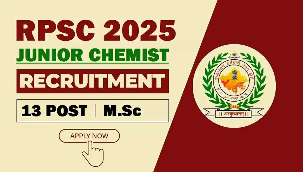 राजस्थान आरपीएससी जूनियर केमिस्ट भर्ती 2025: आवेदन प्रक्रिया और महत्वपूर्ण जानकारी