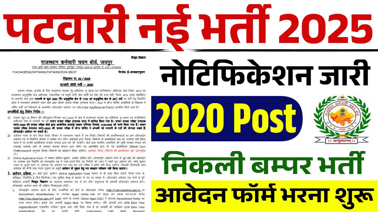 राजस्थान पटवारी भर्ती 2025: आवेदन प्रक्रिया और महत्वपूर्ण जानकारी