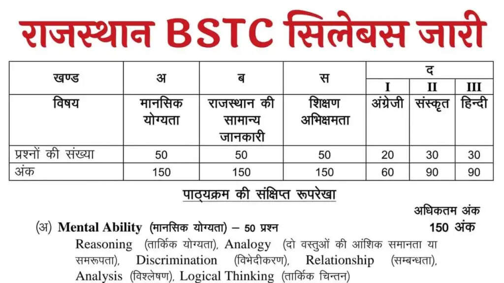 राजस्थान बीएसटीसी 2025 का सिलेबस