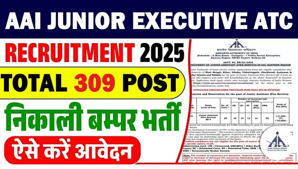 AAI जूनियर एक्जीक्यूटिव एटीसी 2025: रिक्तियों का विवरणकुल पद: 309 पद