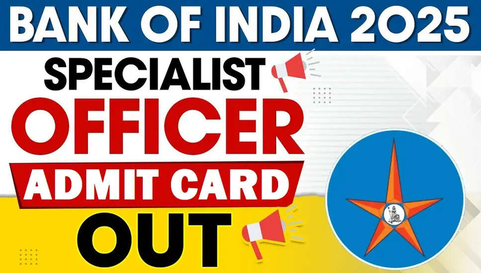 The Bank of India has announced the release of the admit card for the Specialist Officer (SO) recruitment for 2025. With 180 vacancies available, candidates can download their admit cards starting May 6, 2025. The application period was from March 8 to March 23, 2025, and the exam is set for May 17, 2025. This article provides essential details including important dates, application fees, age limits, and the selection process. Stay informed and ensure you have all the necessary information to successfully download your admit card.