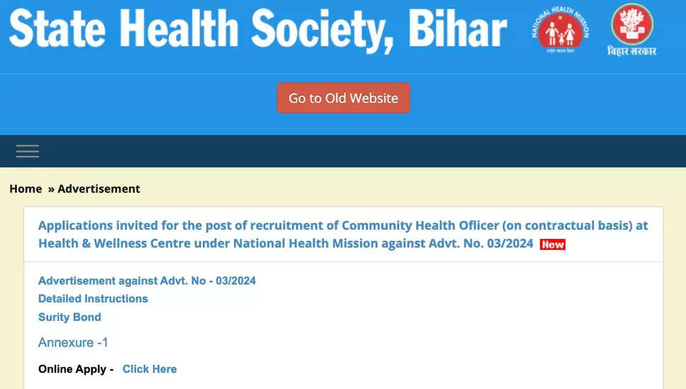 बिहार राज्य स्वास्थ्य समिति SHS समुदाय स्वास्थ्य अधिकारी CHO भर्ती 2024 - 4500 पदों के लिए ऑनलाइन आवेदन करें