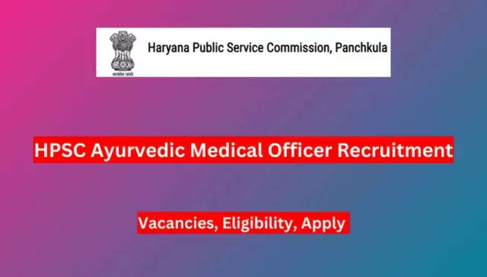 HPSC ने हरियाणा के स्वास्थ्य और आयुष विभाग में आयुर्वेदिक चिकित्सा अधिकारी (ग्रुप-बी) की भर्ती के लिए अधिसूचना जारी की है। इच्छुक उम्मीदवार जो पात्रता मानदंडों को पूरा करते हैं, वे अधिसूचना पढ़ सकते हैं और ऑनलाइन आवेदन कर सकते हैं।