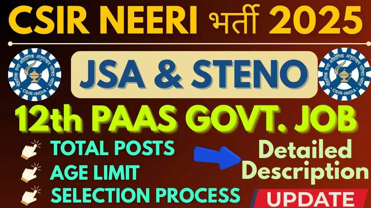 CSIR NEERI में जूनियर सचिवालय सहायक और जूनियर स्टेनोग्राफर के लिए भर्ती 2025