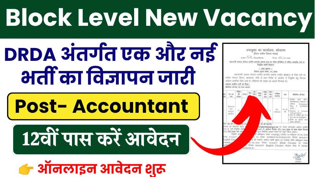 DRDA KODERMA भर्ती 2025: झारखंड में DRDA द्वारा लेखपाल के पदों के लिए नई भर्ती का नोटिफिकेशन जारी किया गया है। यह भर्ती ग्रामीण विकास विभाग, झारखंड के अंतर्गत प्रधानमंत्री आवास योजना ग्रामीण के लिए प्रखंड स्तर पर रिक्त पदों पर अनुबंध के आधार पर नियुक्ति हेतु योग्य उम्मीदवारों से निःशुल्क आवेदन आमंत्रित किए गए हैं। आवेदन की प्रक्रिया 12 मार्च 2025 से शुरू होकर 22 मार्च 2025 तक चलेगी। इच्छुक उम्मीदवार नीचे दी गई जानकारी के अनुसार ऑनलाइन आवेदन कर सकते हैं।