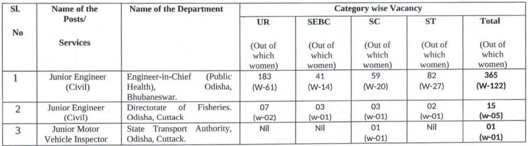 - जूनियर इंजीनियर (सिविल) अंडर इंजीनियर इन चीफ (पब्लिक हेल्थ), ओडिशा: 365