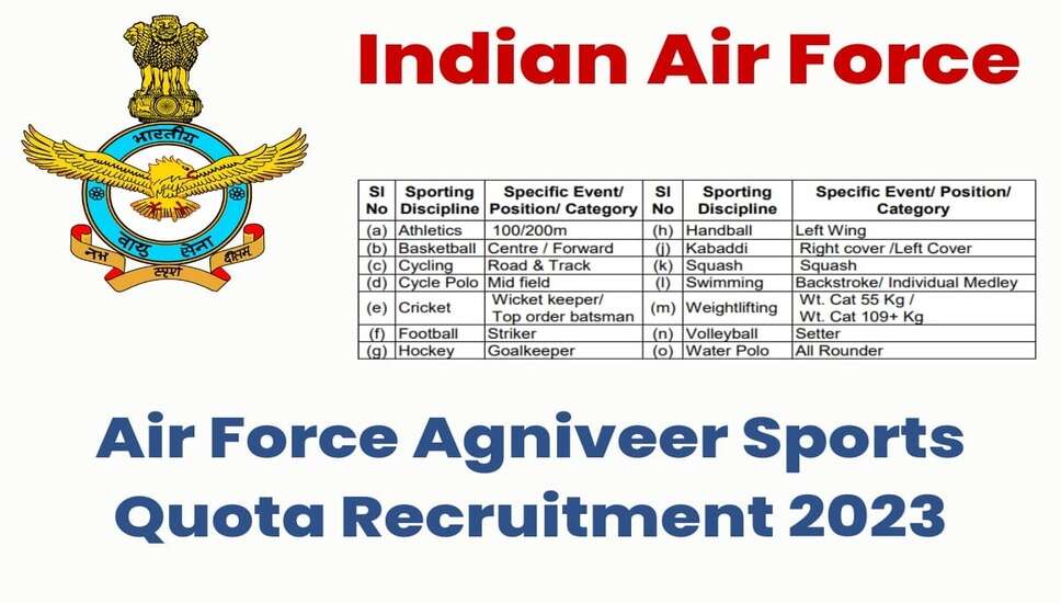 भारतीय वायुसेना अग्निवीर वायु भर्ती 2023: खेल रिक्तियों (02/2023) के लिए ऑनलाइन आवेदन करें